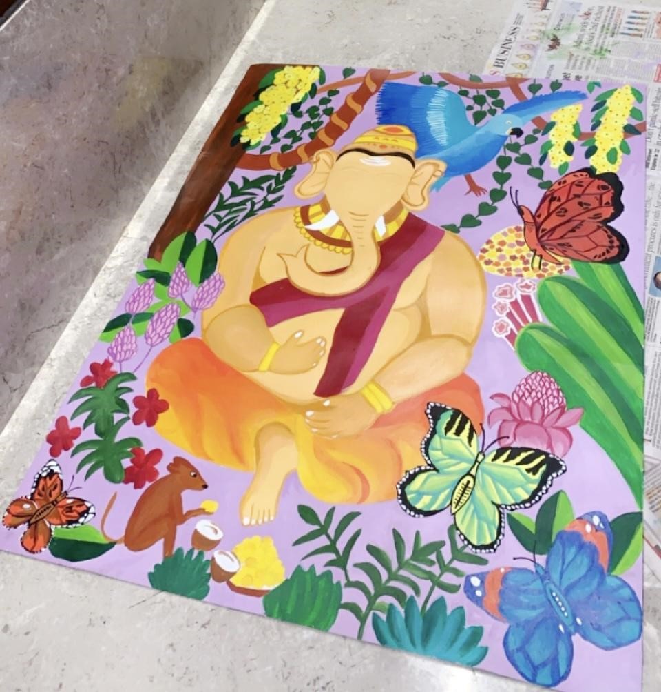 Every canvas is a journey of its own "Henry Frankenthaler, indeed my art journey has been special and enriching while painting these series of painting. My portfolio is called - “The enchanted forest". I have derived my works from a story I had heard as a child of Lord Ganesha's elephant head. My drawing explores the story through a different perspective as it highlights the flora and fauna of the mystical jungle in which this mythological story takes place. My three drawing one of the parakeet's, monarch butterflies and the final one being of lord Ganesha explore this story from a unique and different perspective.